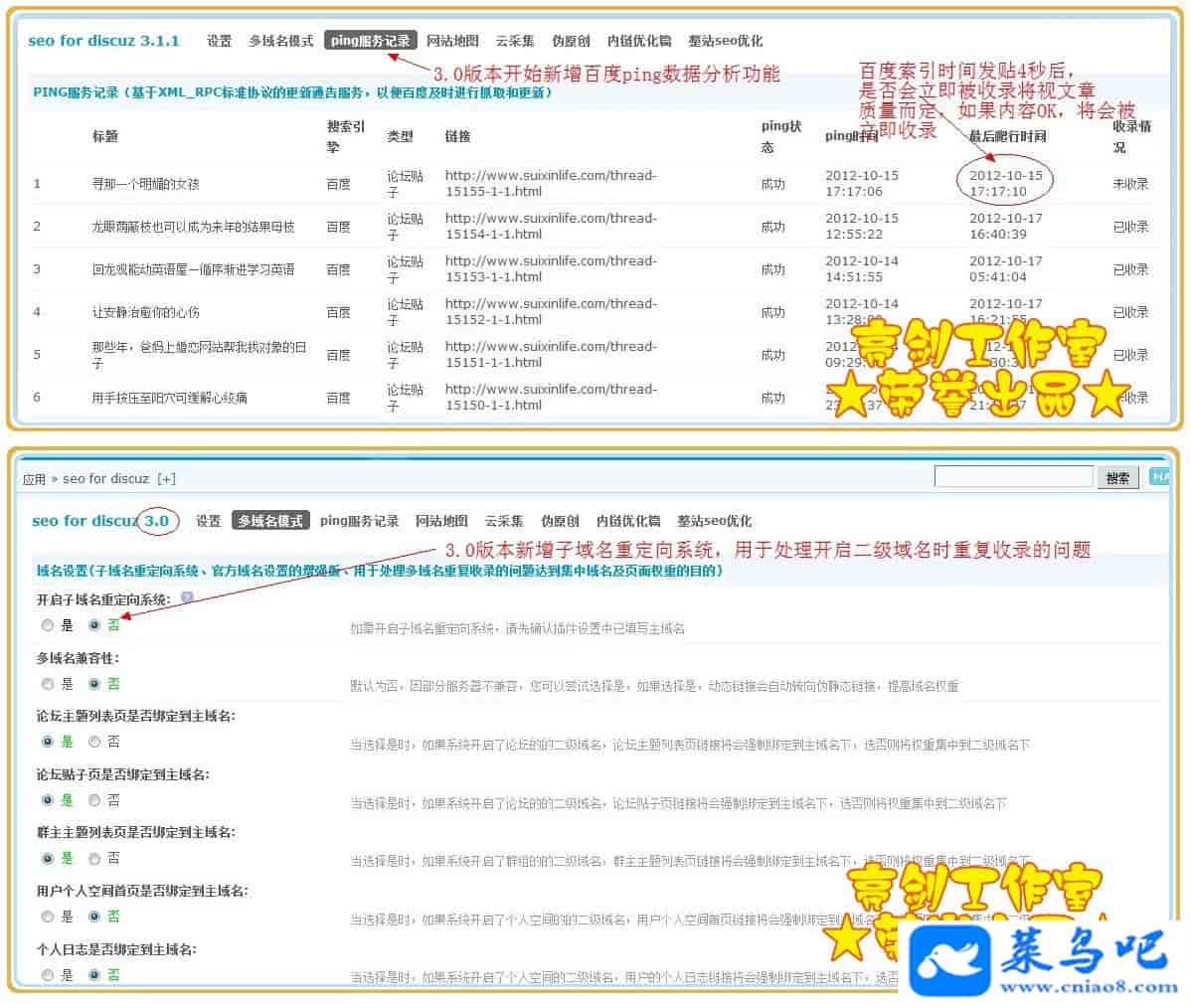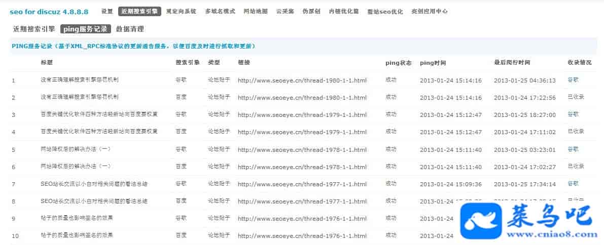 4、支持ping功能(百度/谷歌),并且支持查看ping的结果及展示收录情况,秒收亦无不可(同时支持本地及云端ping模式)
