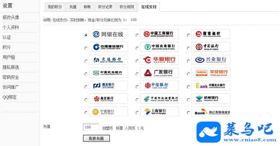 1、网银在线网上支付平台(http://www.chinabank.com.cn/),插件接口