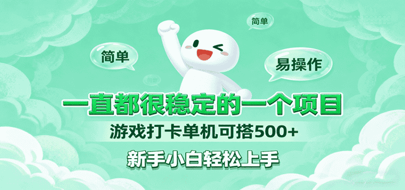 [项目营销] 一直都很稳定的一个项目游戏打卡单机可搭500+,新手小白轻松上手