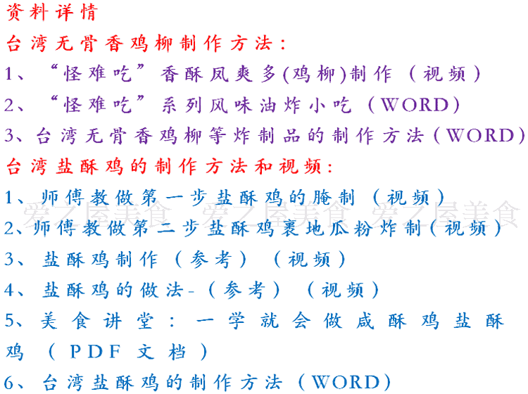 [综合教程] 台湾油炸小吃无骨香鸡柳 盐酥鸡块腌料技术配方 制作方法