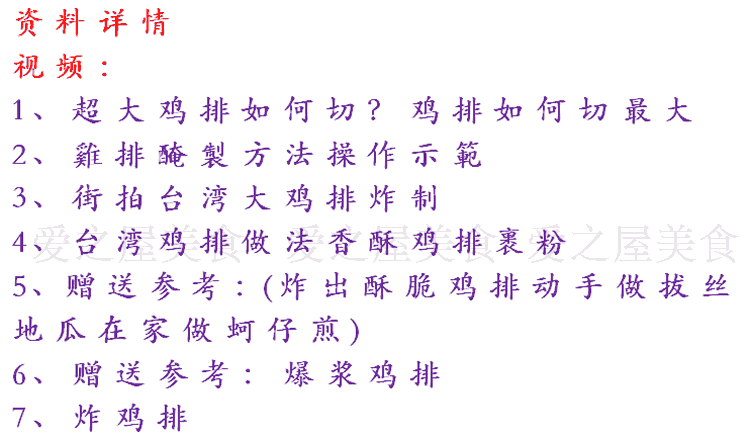[综合教程] 正宗台湾超大鸡排技术配方大全 制作方法 夜市小吃油炸技术方法