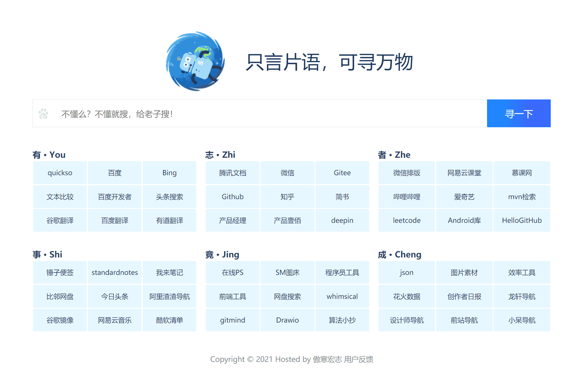 [免费源码] 单页HTML只言片语网站分类导航源码模板 无后台 无数据库