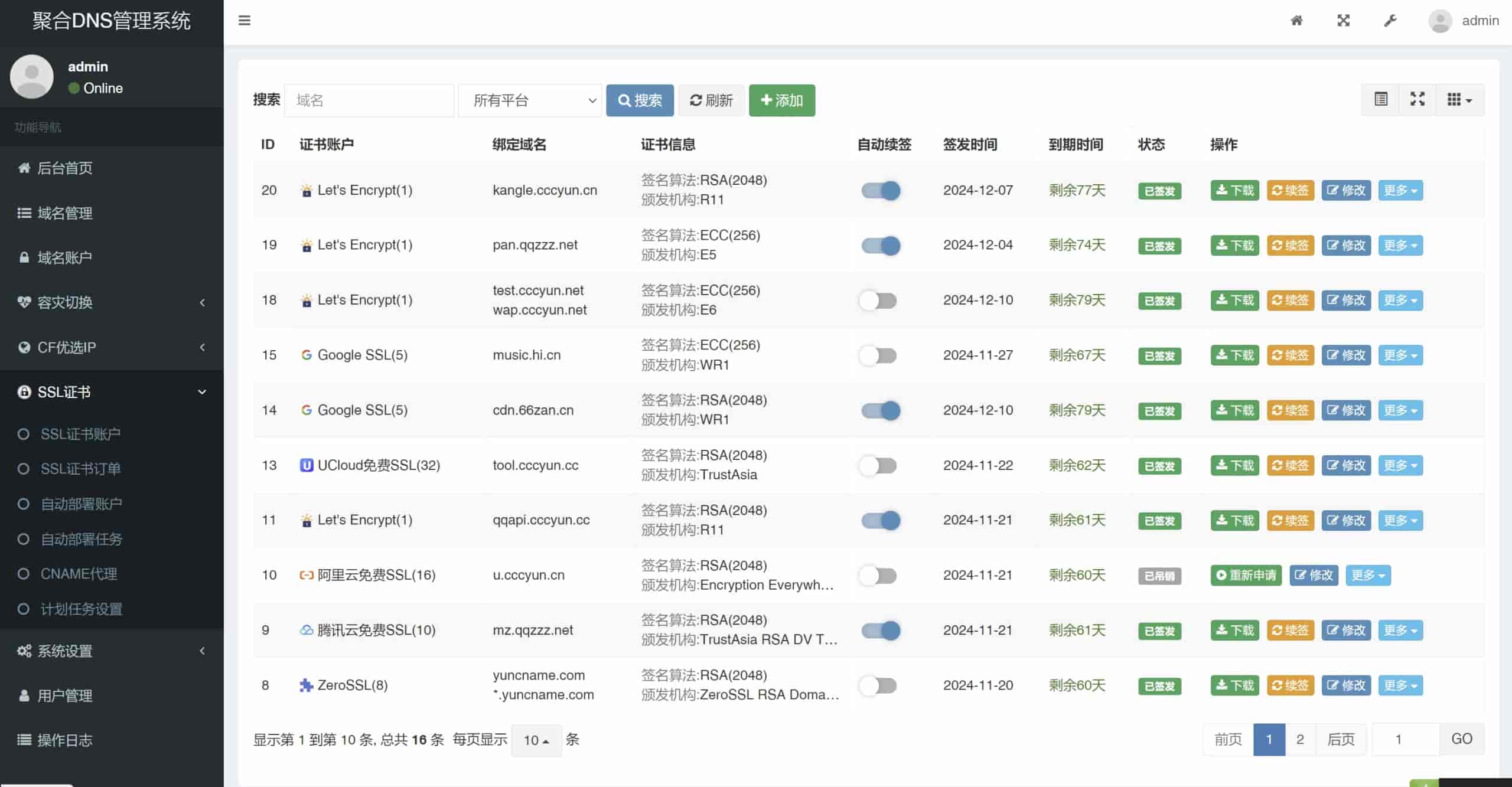 [PHP源码] 聚合DNS已更新SSL证书自动申请与部署功能