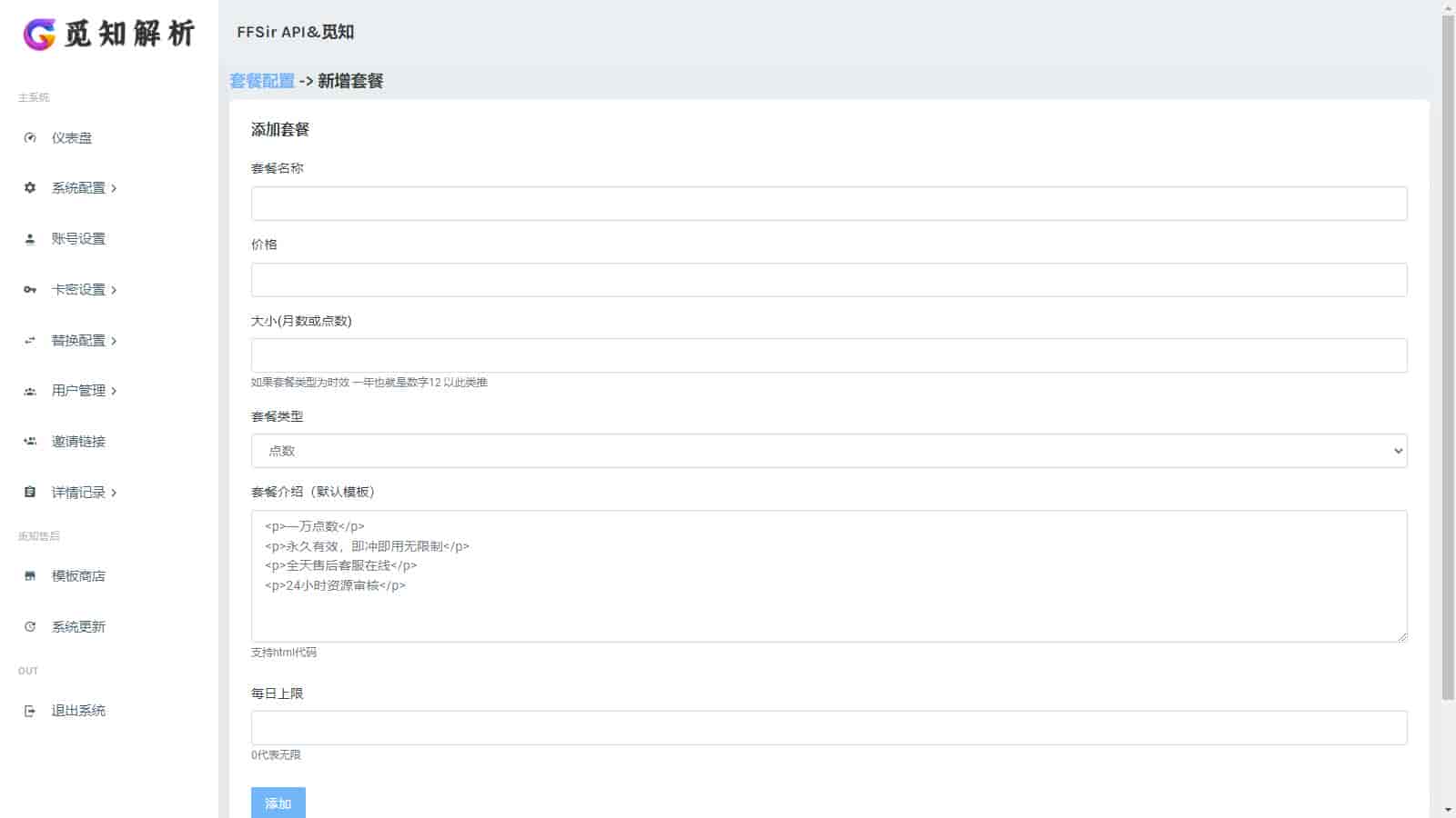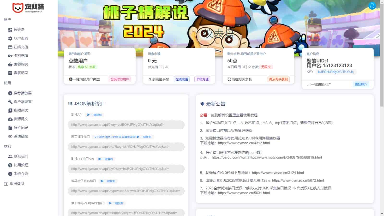 3、新增易支付在线支付充值功能,可支持前端用户进行购买接口套餐