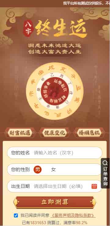 传统的命理占卜行业也要随时互联网的洪流随之前进,让用户可以足不出户即可享受八字测算的乐趣,