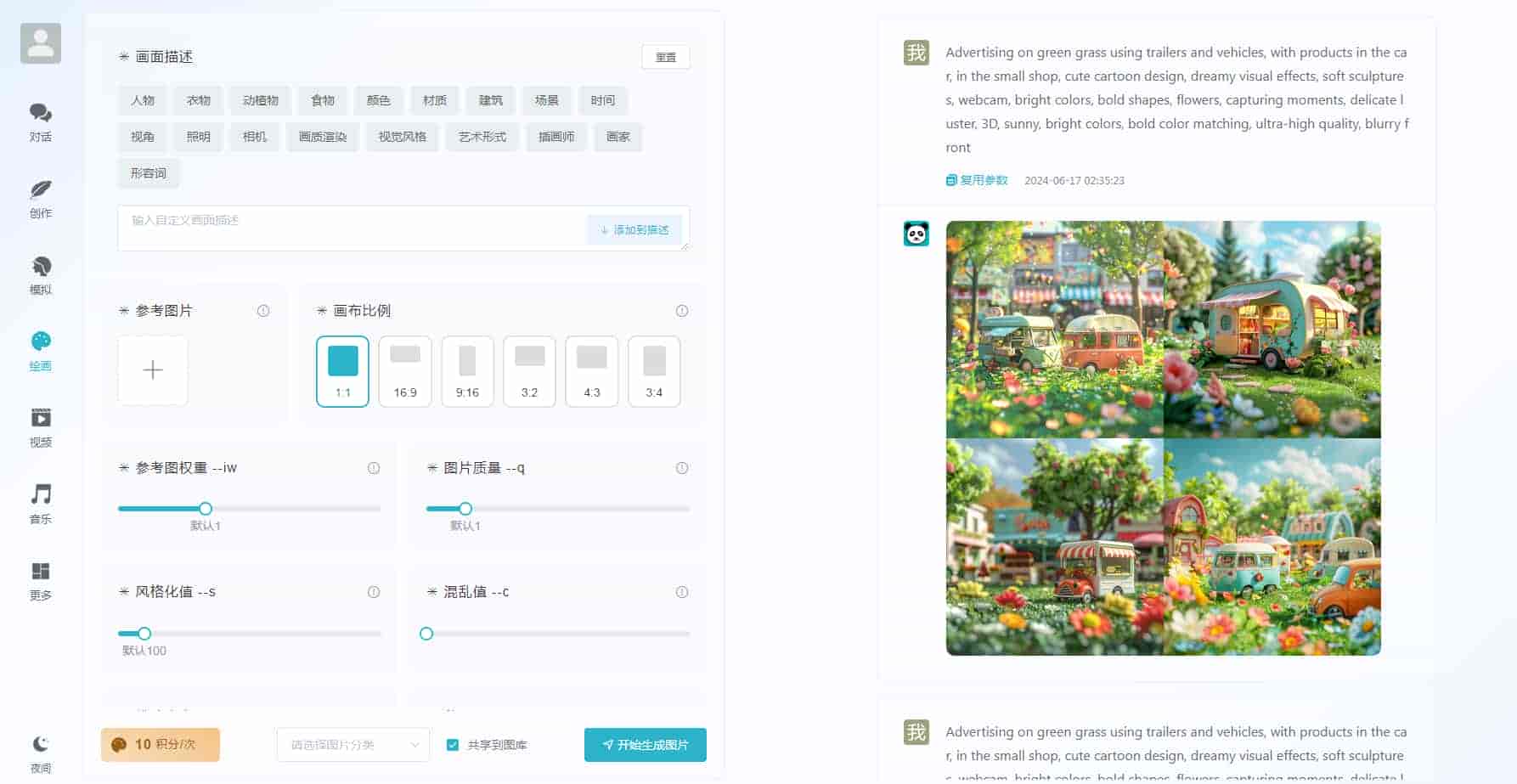 继续优化了数字先锋Midjourney接口,出图更快更稳定。H5端界面美化后更美观,