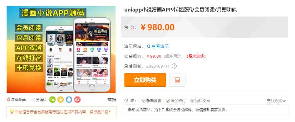 [PHP源码] 价值980的uniapp小说漫画APP小说源码/会员阅读/月票功能