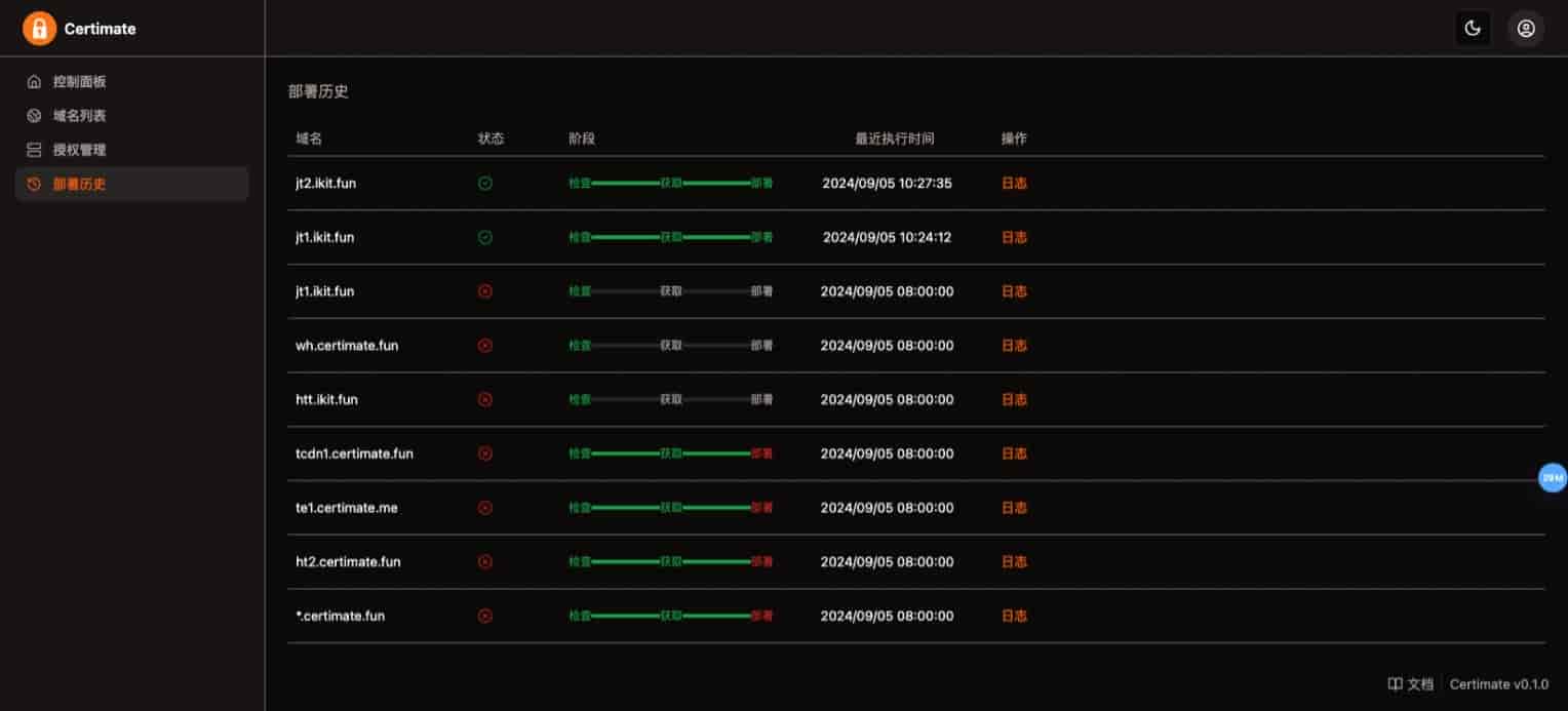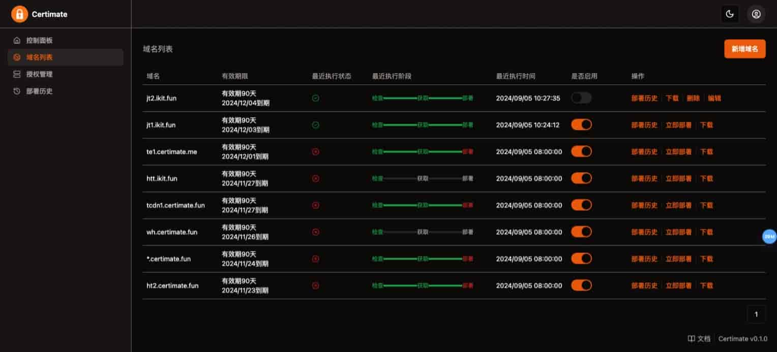 3、Certimate 存储证书信息,包括证书内容、私钥、证书有效期等,并在证书即将过期时自动续期。