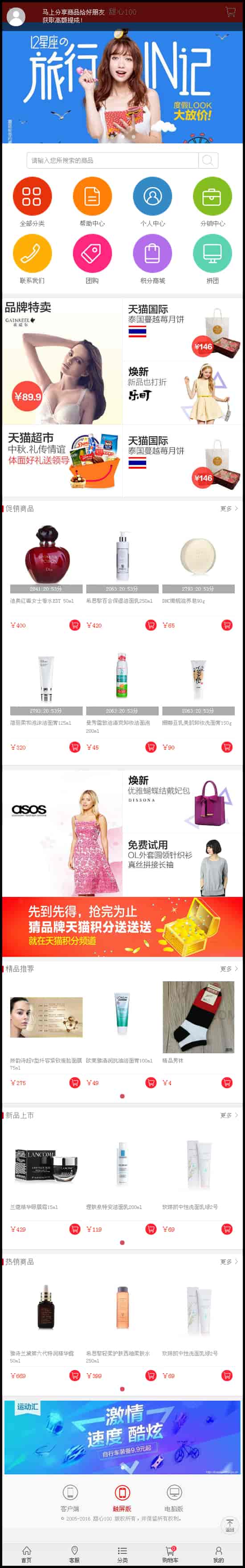 程序介绍: 此次分享的商城程序是单用户多商品商城,是单独商家发布多商品出售给顾客的系统,并且发展分销下线!包含的功能足够你满足现在所需要的功能了,微信商城+手机商城+PC商城三合一,并且带有微信扫码支付,支付宝和微信支付,不再单调的是做什么微信商城,现在是手机pc微信全上线!!!