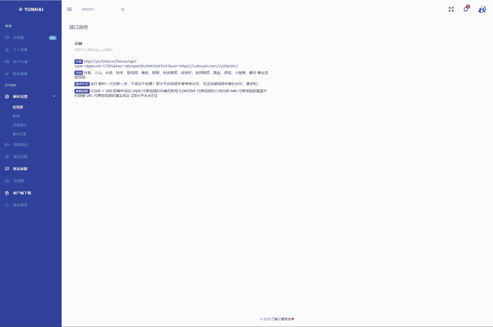 云海计费系统v4.2 视频解析 短视频解析 影视视频电影解析计费平台源码程序+文本教程