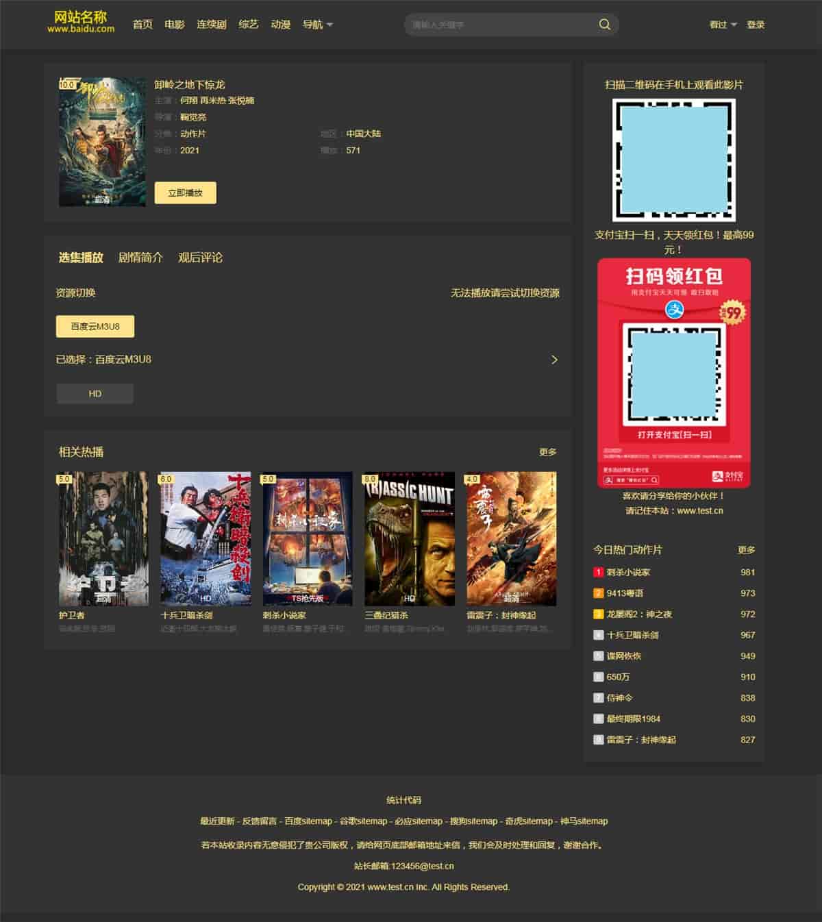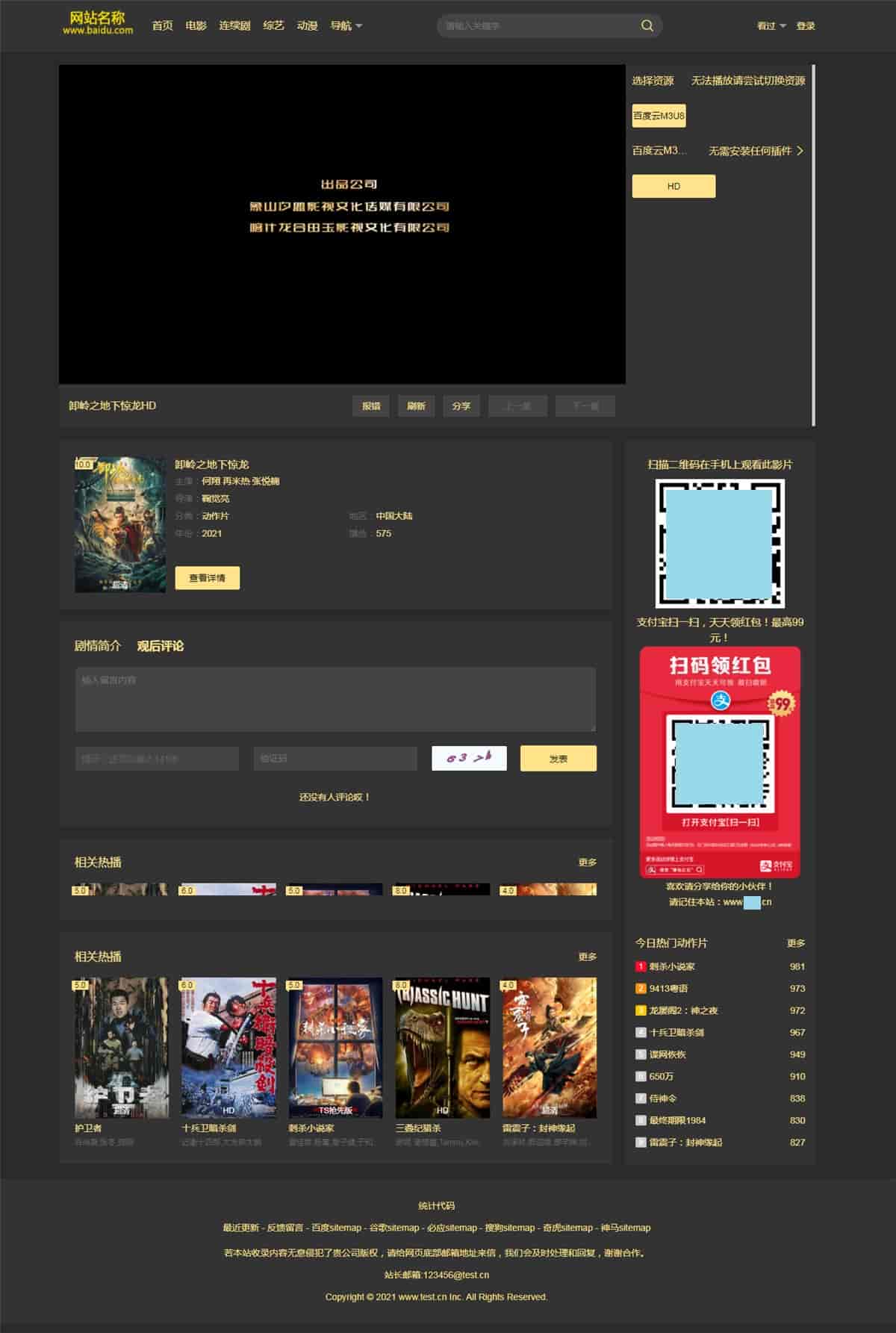 [影音娱乐] 苹果CMSv10黑金色自适应网站模板 已测试完美无错