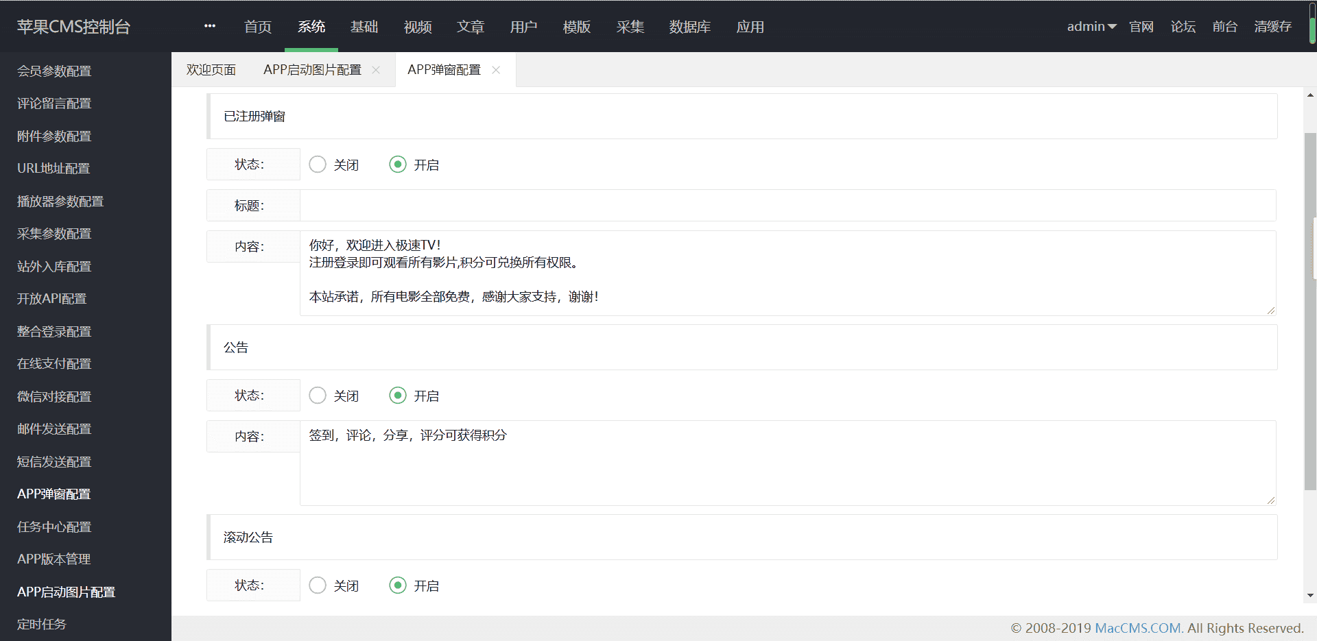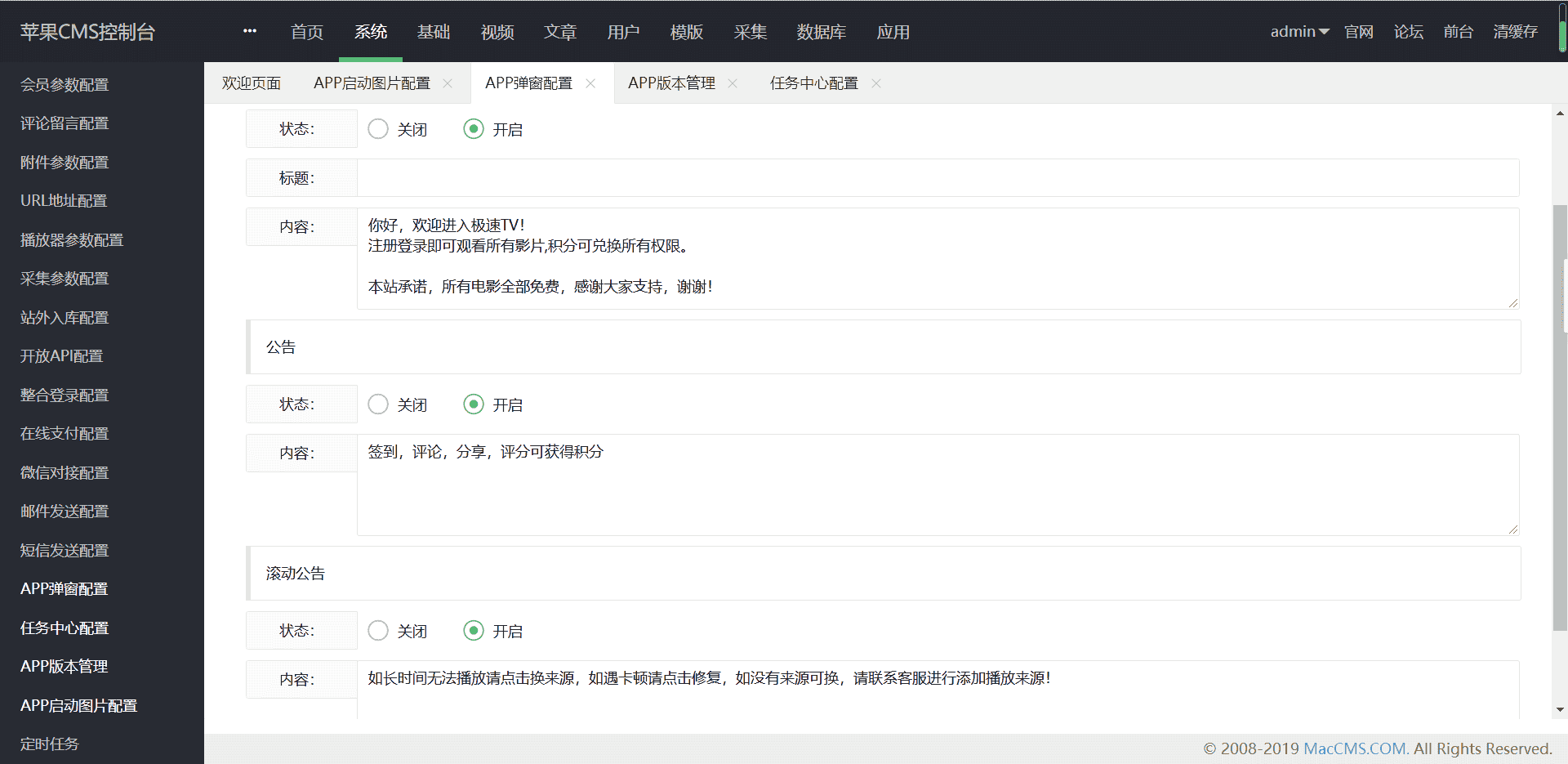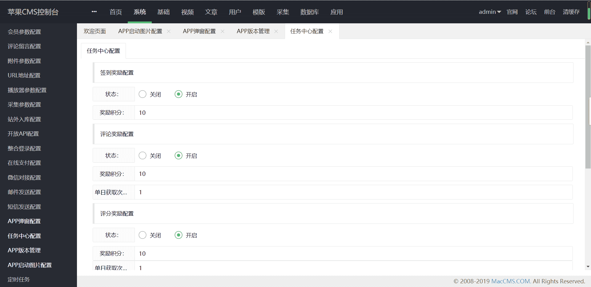(9)任务系统(无限裂变)(10)后台支持对接云转码,支持用第三方工具全自动采集入库