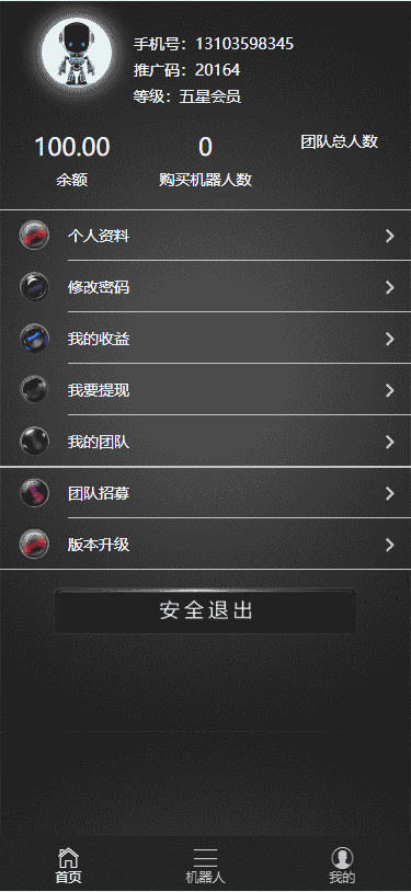 云矿机云挖矿,智能AI机器人合约区块链项目,后台功能全部完美可用。自带机器人限购机制营销手段,会员星级设定,提现绑定银行卡后台手动审核转账,充值自动到账,微信支付宝双通道派特个人免签,这样对平台也是最安全最有效率的。