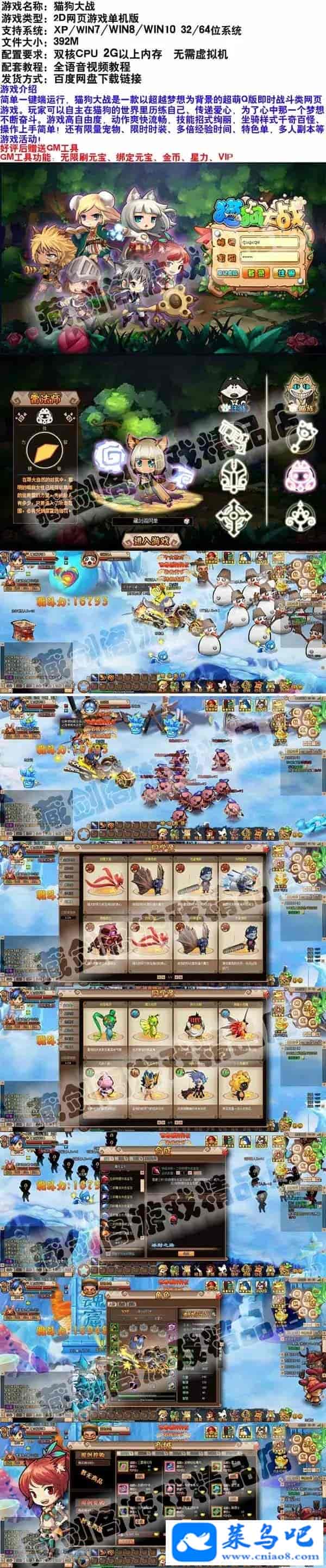 猫狗大战网页游戏简单一键端Q版萌系GM刷元宝金币星力VIP