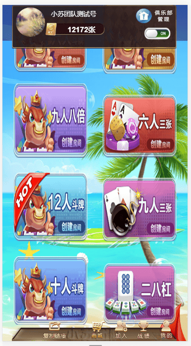 俱乐部+积分场+开房记录+战绩+代理+胜率控制+透视控制。下载地址含1.0和2.0请大家根据需求搭建。
