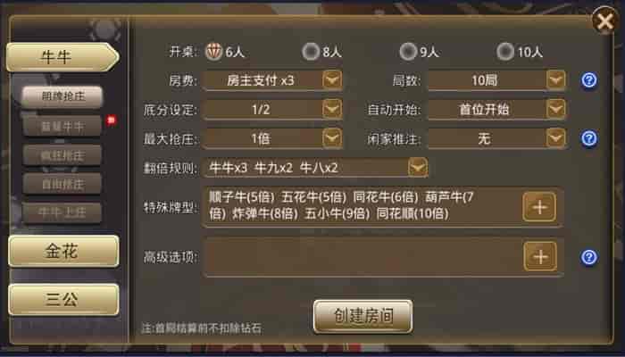 房卡牛牛 房卡金花 房卡三公 三合一棋牌游戏组件