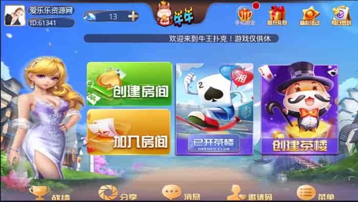 牛牛房卡:名牌抢庄,簸簸牛牛,疯狂抢庄,自由抢庄,牛牛上庄金花:传统模式,名牌抢庄模式三公:大吃小,自由抢庄,名牌抢庄带俱乐部俱乐部分为比赛积分模式以及普通房卡模式