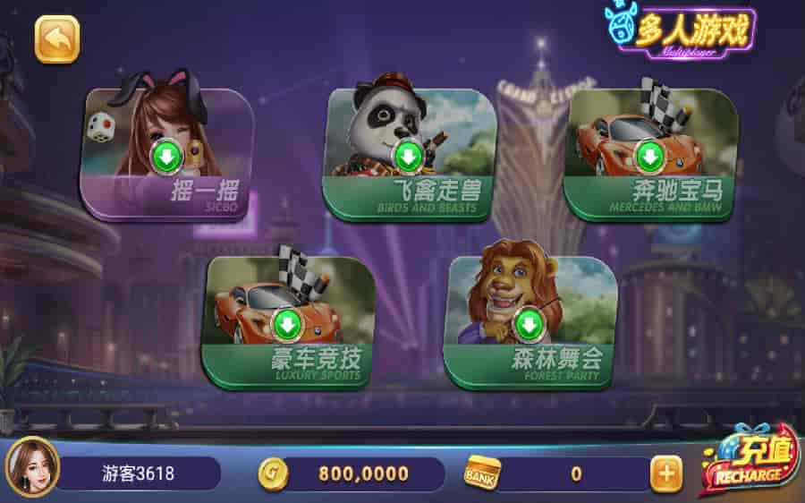 多人游戏: 摇一摇、飞禽走兽、豪车竞技、森林舞会、奔驰宝马