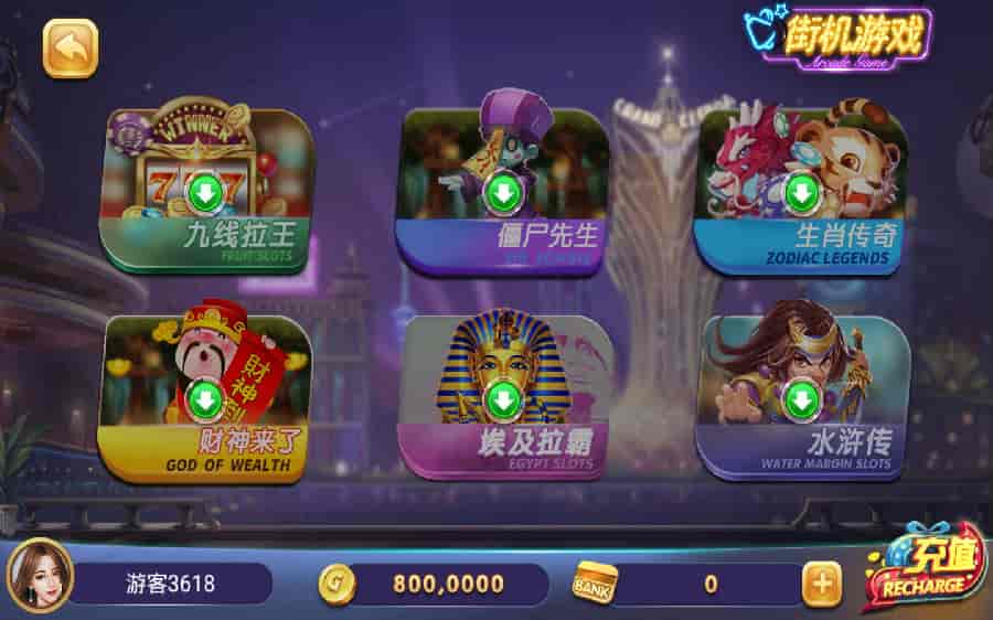 街机游戏:九线拉王、僵尸先生、生肖传奇、财神来了、埃及拉霸、水浒传