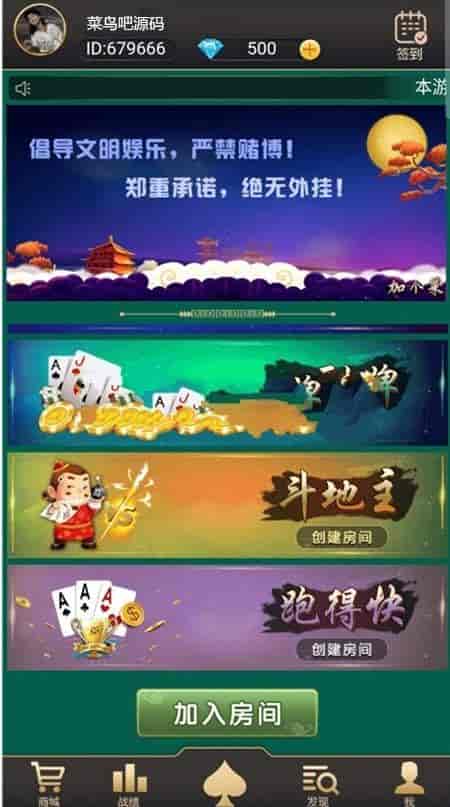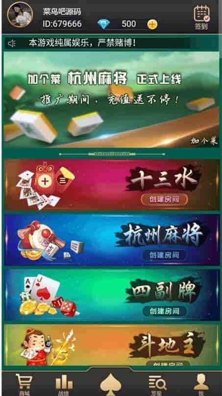 加个菜H5游戏十三水斗地主跑得快四副牌麻将五合一棋牌源码