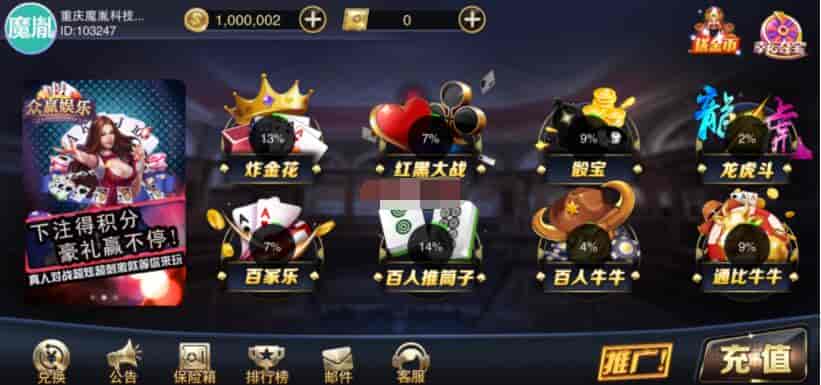 星耀刀锋版百人场:骰宝、百人牛牛、龙虎斗、红黑大战、百家乐、百人推筒子