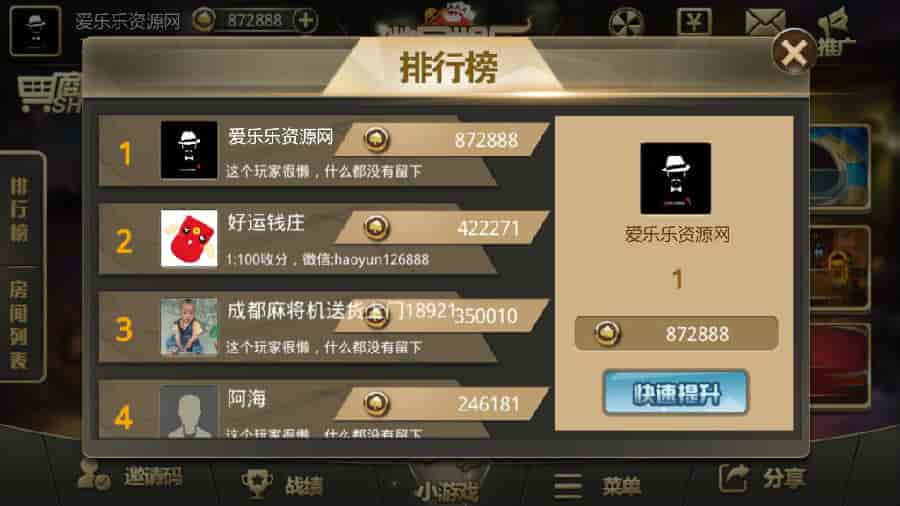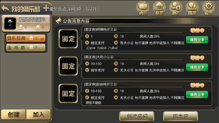 最新亲测无授权完整版微局娱乐棋牌组件,金币加房卡双模式+机器人对战+俱乐部+完整数据+双端APP+服务端+后台
