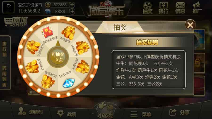 内含游戏:牛牛、金花、三公