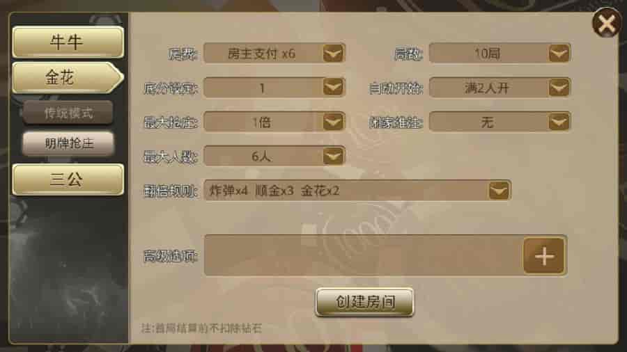 金花玩法:传统模式、明牌抢庄