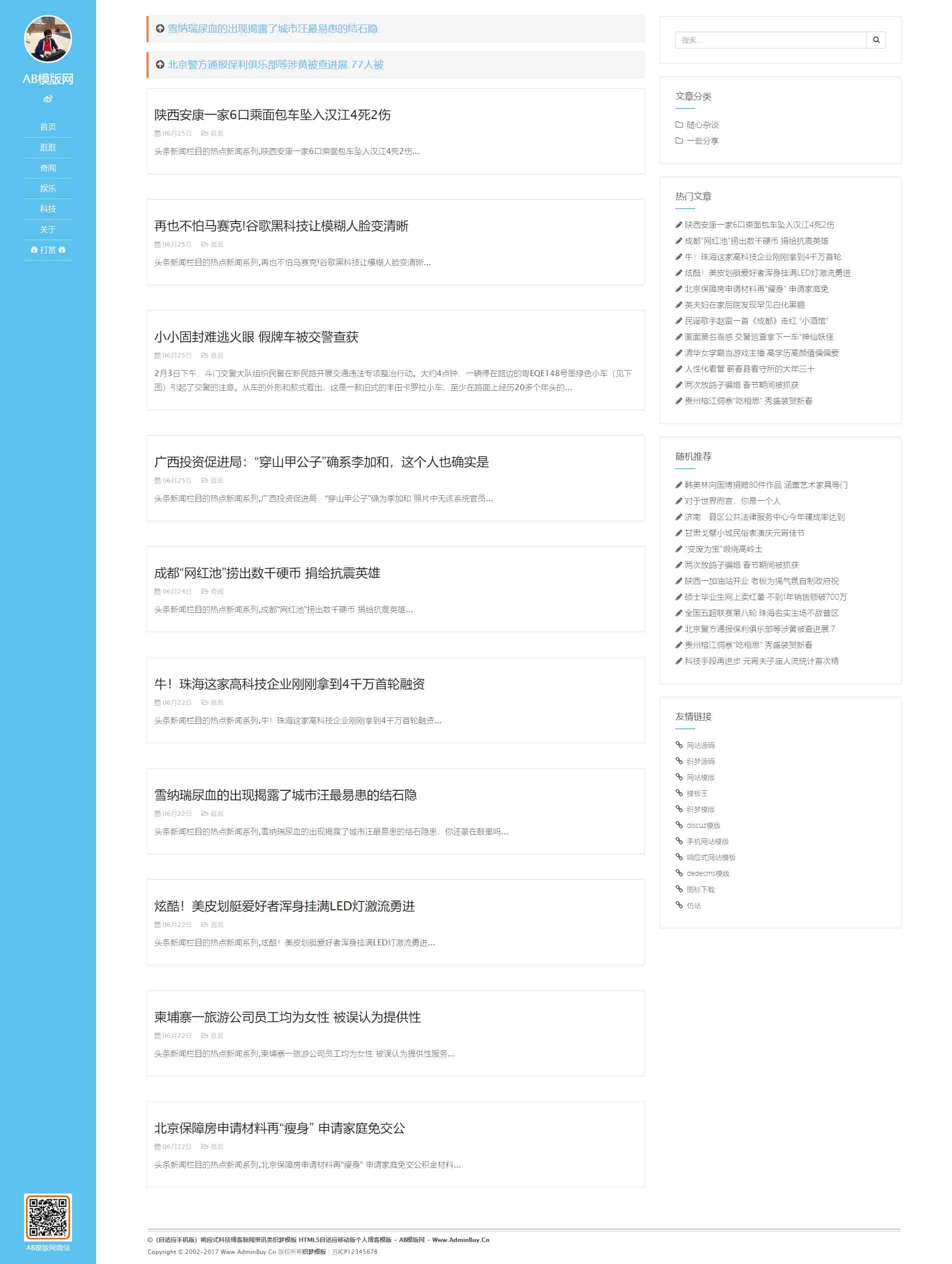 [织梦模板] 织梦dedecms浅蓝色个人博客网站织梦dede模板源码[自适应手机版]