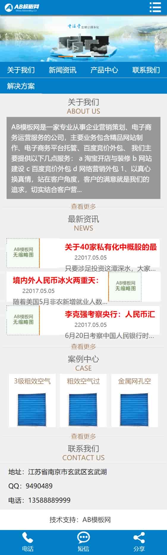 [织梦模板] 织梦dedecms蓝色空气净化网站织梦dede模板源码[带手机版数据同步]