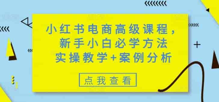 小红书电商高级课程,新手小白必学方法,实操教学+案例分析