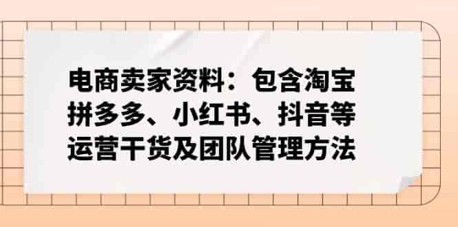 电商卖家资料:包含淘宝、拼多多、小红书、抖音等运营干货及团队管理方法