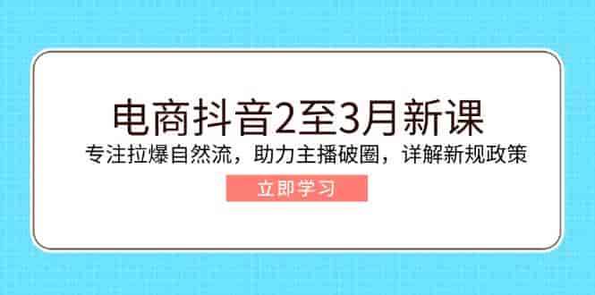 电商抖音2至3月新课:专注拉爆自然流,助力主播破圈,详解新规政策