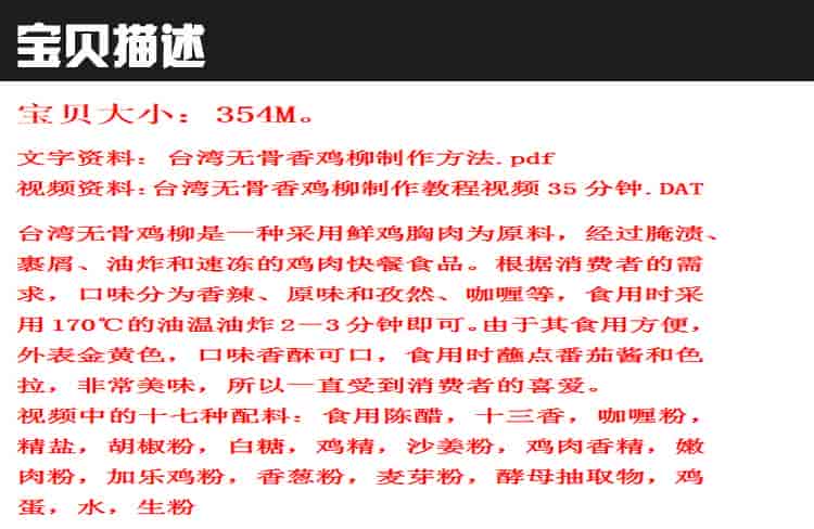 [综合教程] 台湾炸无骨香鸡柳技术 腌料制作配方 小吃技术配方大全
