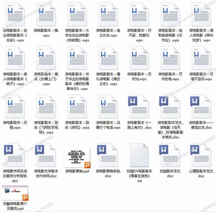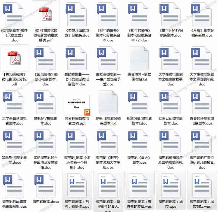 资源名称:微电影剧本策划方案 成品脚本分镜头招商素材合集