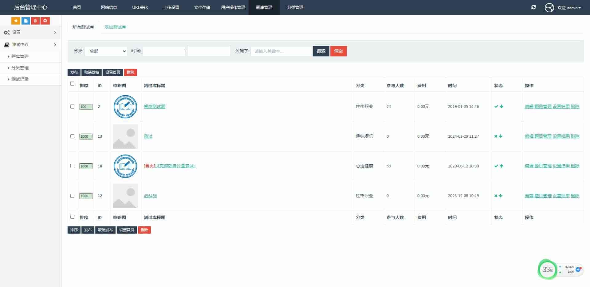 很方便,平台支持免费测试和付费测试两种方式,具体可以查看演示。系统不支持导入题库,