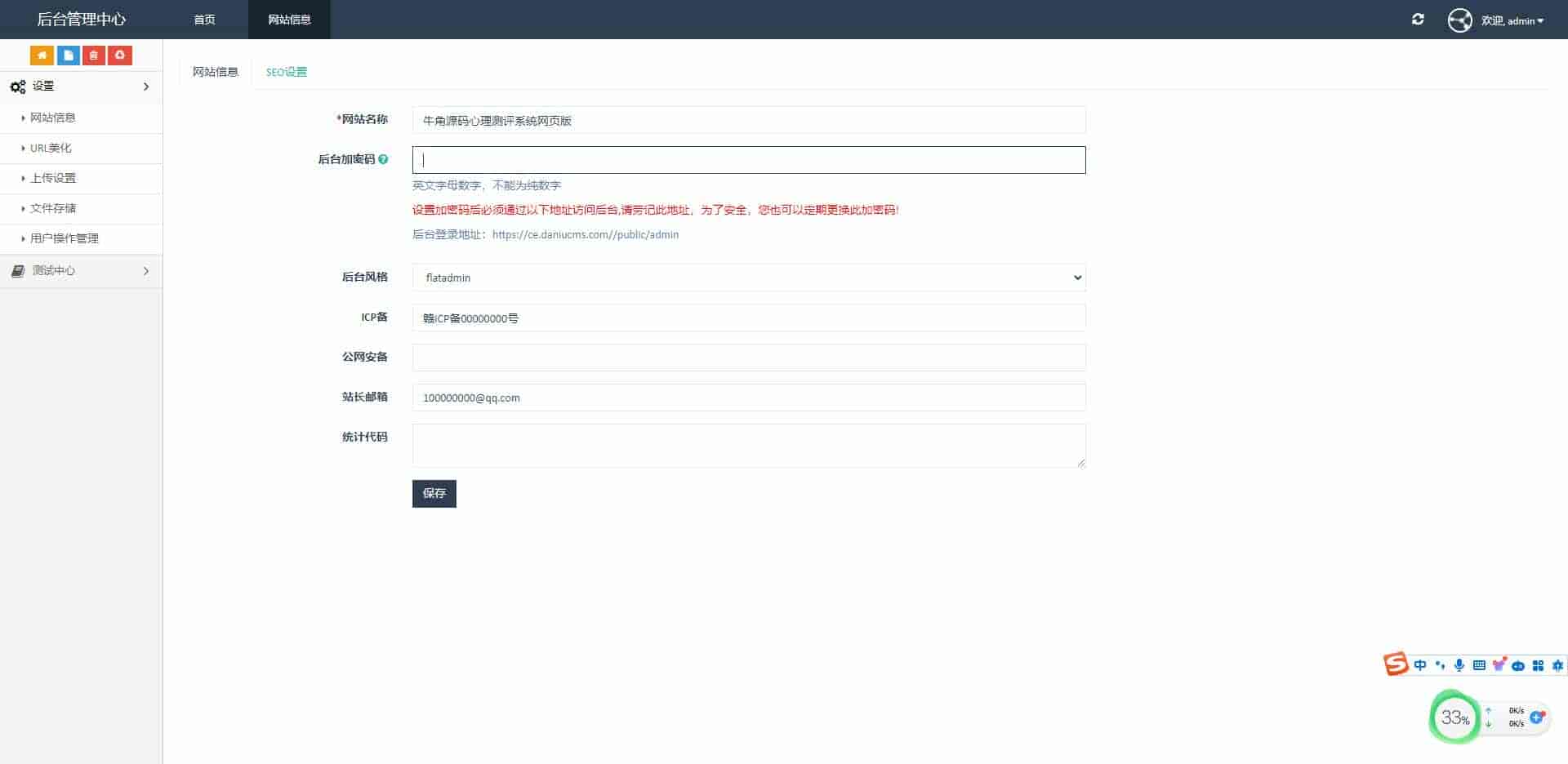 5、功能介绍:后台可以添加多题,多选项,按分值区间设置测评结果,没有专门会员注册的功能,