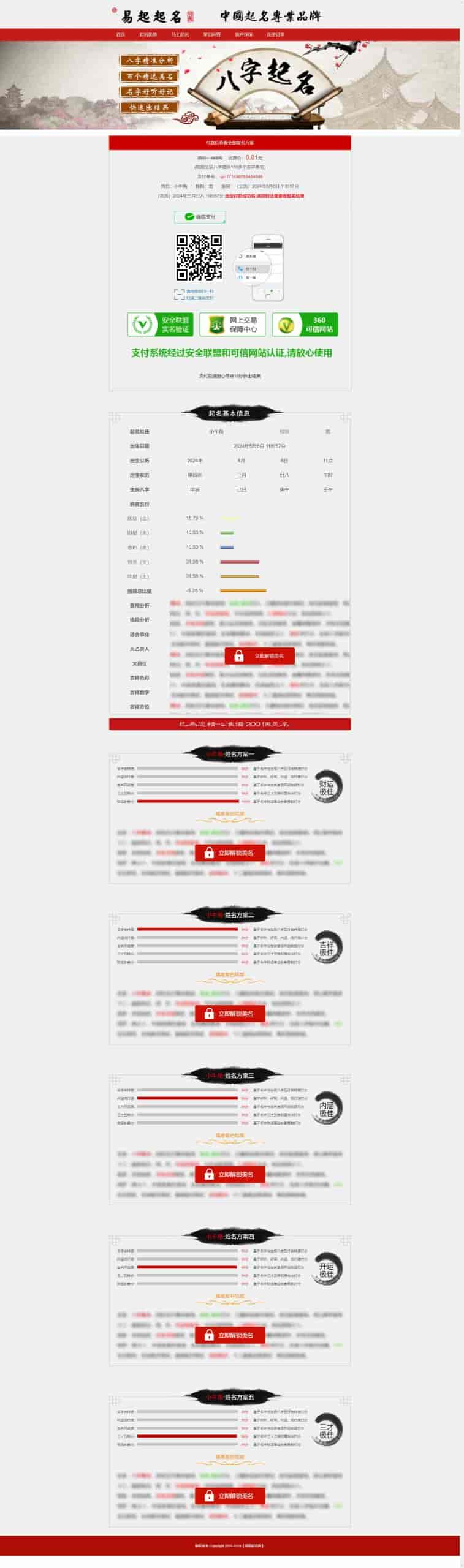 特点:免注册,免登录,可直接在线起名,并且完成付款。