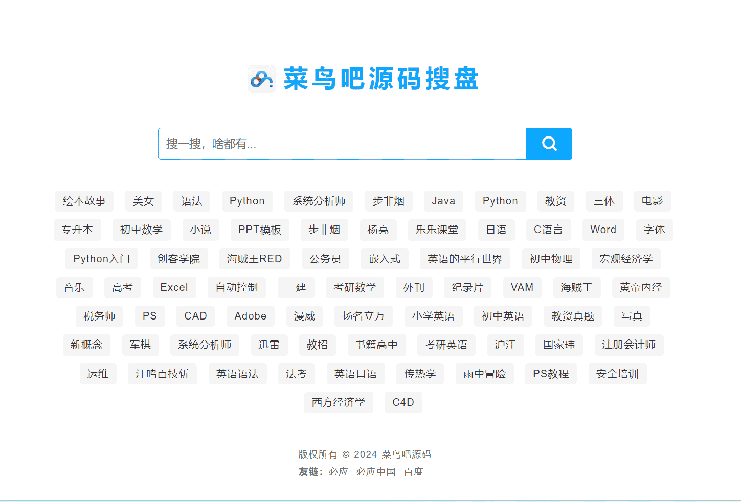 这是一个基于thinkphp5.1+MySQL开发的网盘搜索引擎,可以批量导入各大网盘链接,例如百度网盘、阿里云盘、夸克网盘等。