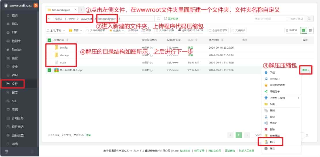 1. 新建目录,上传程序压缩包并解压 新建目录
