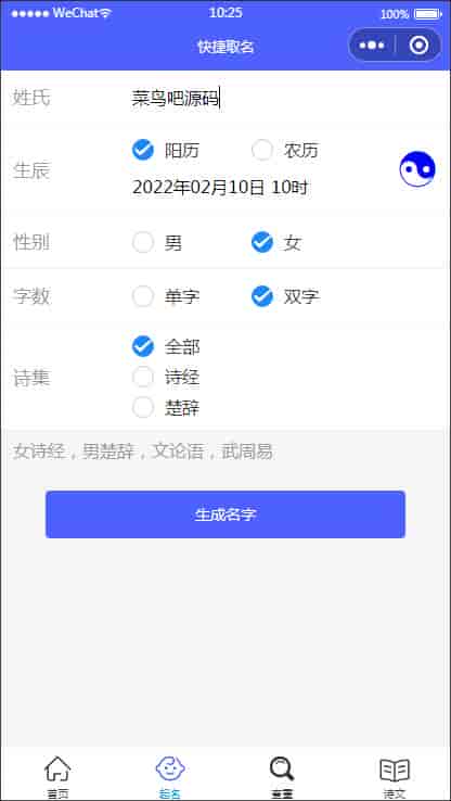 取名工具(支持多种选择取名)