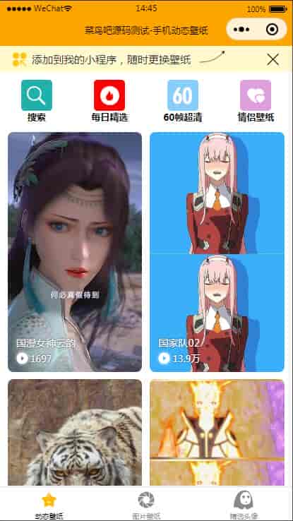 【已测】微信小程序手机动态壁纸头像小程序(带流量主)源码