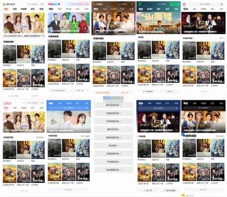 九种主流视频APP风格仿站手机影视网站程序,页面精美,基于PHP开发,无需数据库;