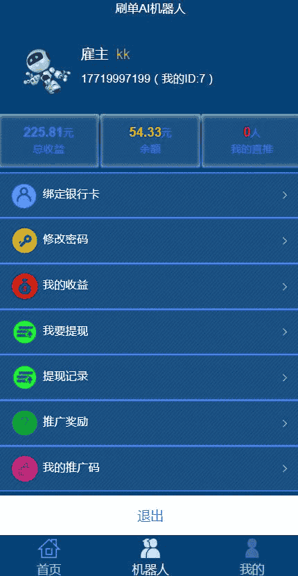 后台完善,可设置机器人每天佣金数,可对接短信,个人免签码支付