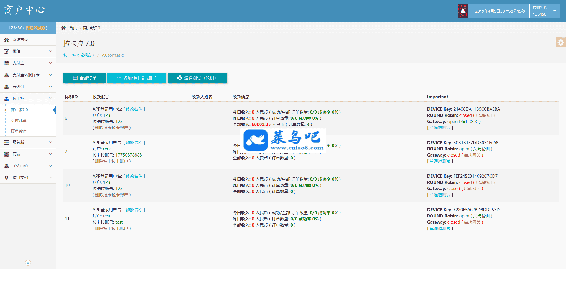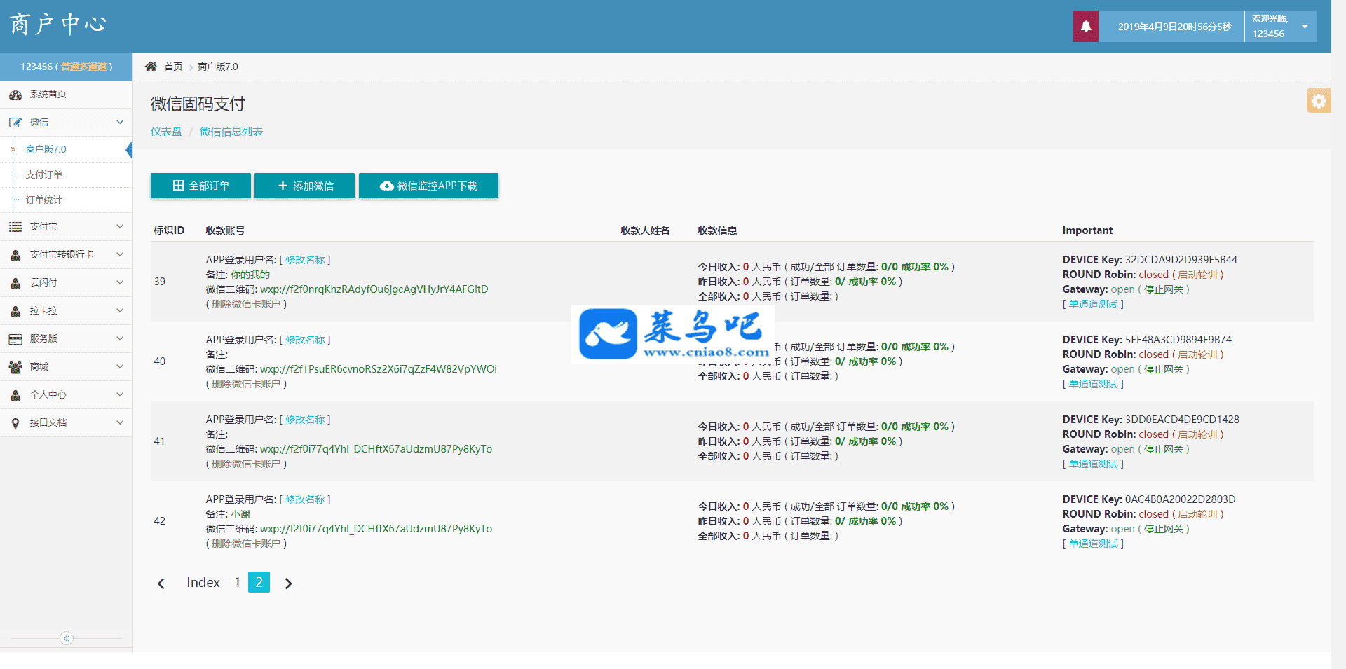 网友分享给本站的一款即时到账源码,互站上卖好几千,没来得及测试,不保证能用!免费分享给大家拿去研究吧!有简单的教程,有伪静态规则! 功能:即时到账 通道:微信固码/支付宝转账/支付宝红包/云闪付/拉卡拉 都为个人即时到账 无需签约官方 建议测试环境:Nginx1.14+mysql5.6+phpmyadmin4.4+php7.1