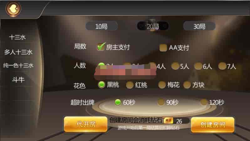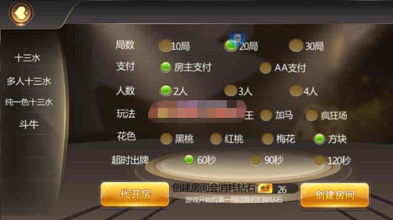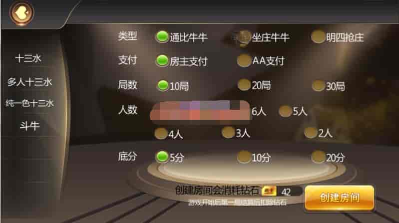 这个主打就是十三水,然后带有牛牛,俱乐部模式,还有积分上下分模式,十三水带有买马模式,算是比较齐全的一个东西。