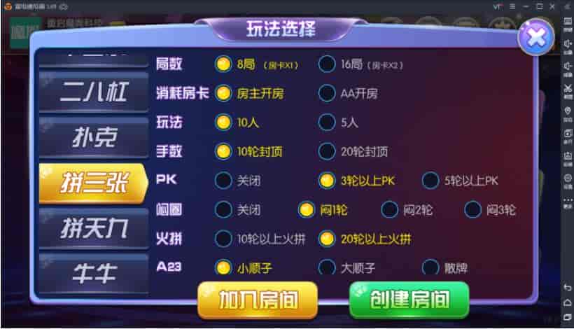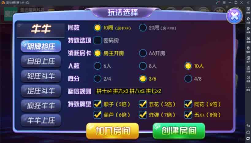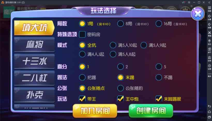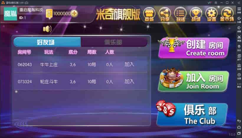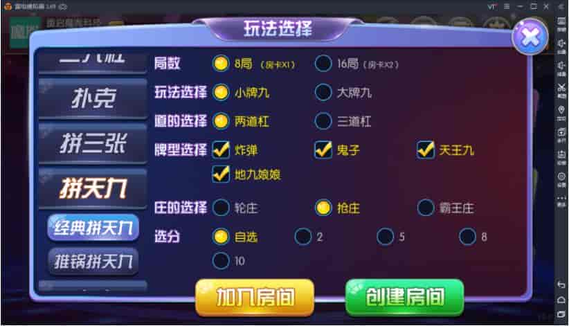 金币类型游戏:拼三张、经典牛牛、斗地主、跑得快、填大坑、十三水、营口麻将、红中麻将、拼天九、推筒子、三公、百人牛牛