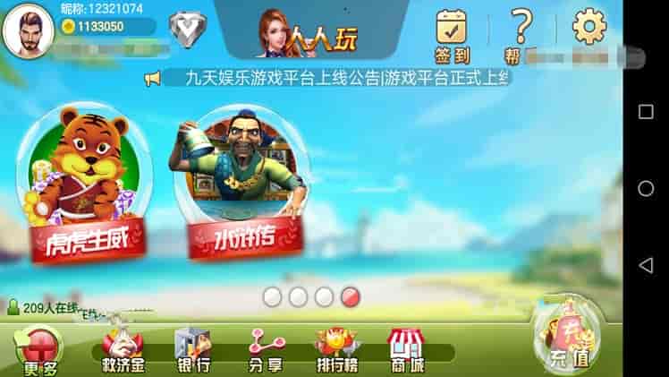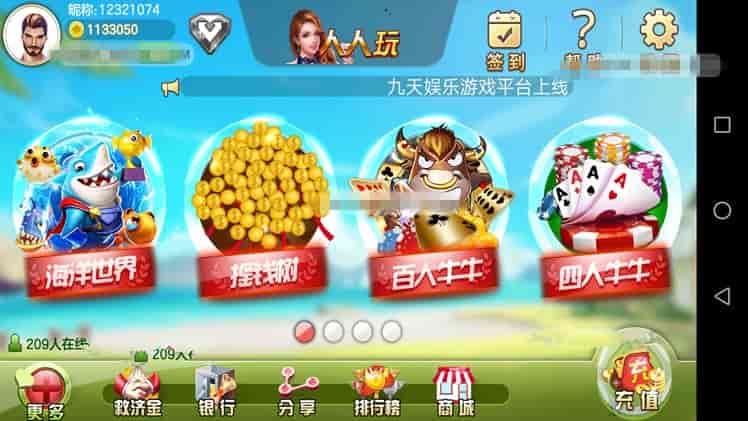 其中平台游戏含有:海洋世界、摇钱树、百人牛牛、四人牛牛、二人牛牛、通比牛牛、龙虎斗、 二八杠、奔驰宝马、飞禽走兽、五星宏辉、水浒传等多款游戏。