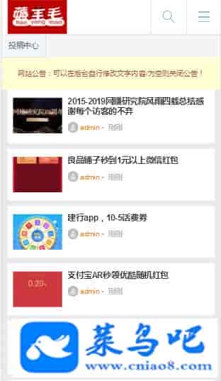 薅羊毛资讯博客自动采集站源码,WordPress后台前后端均为响应式布局方便管理,支持用户注册科投稿。