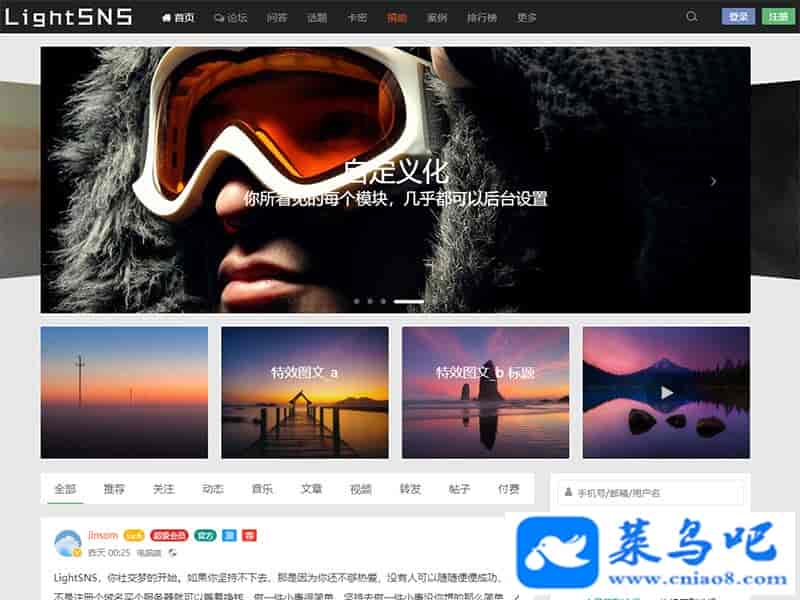 WordPress主题 LightSNS_1.5.204.1自适应轻社交主题模板,包含多板块论坛、问答、VIP、充值、付费可见等更新记录: